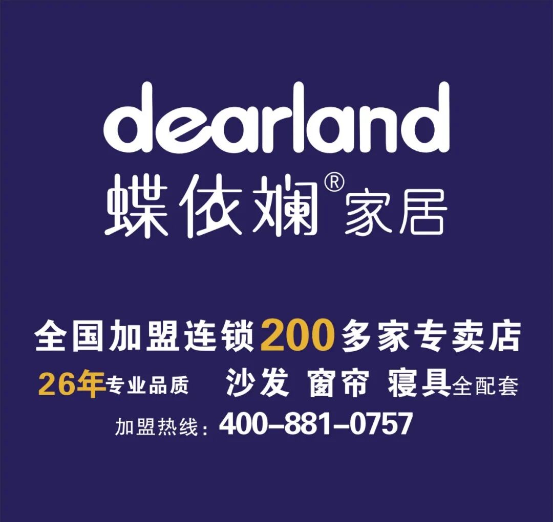 “搭配更好看,我选蝶依斓”,秉持着为用户创造价值的企业使命和致力家居布艺打造百年品牌的长远目标,蝶依斓打造出一系列精雕细琢的优质产品。从1994年创立到如今200多家专卖店的全国覆盖,工匠精神、追求卓越的经营理念贯穿始终,为成千上万的蝶粉们创造幸福家居生活。