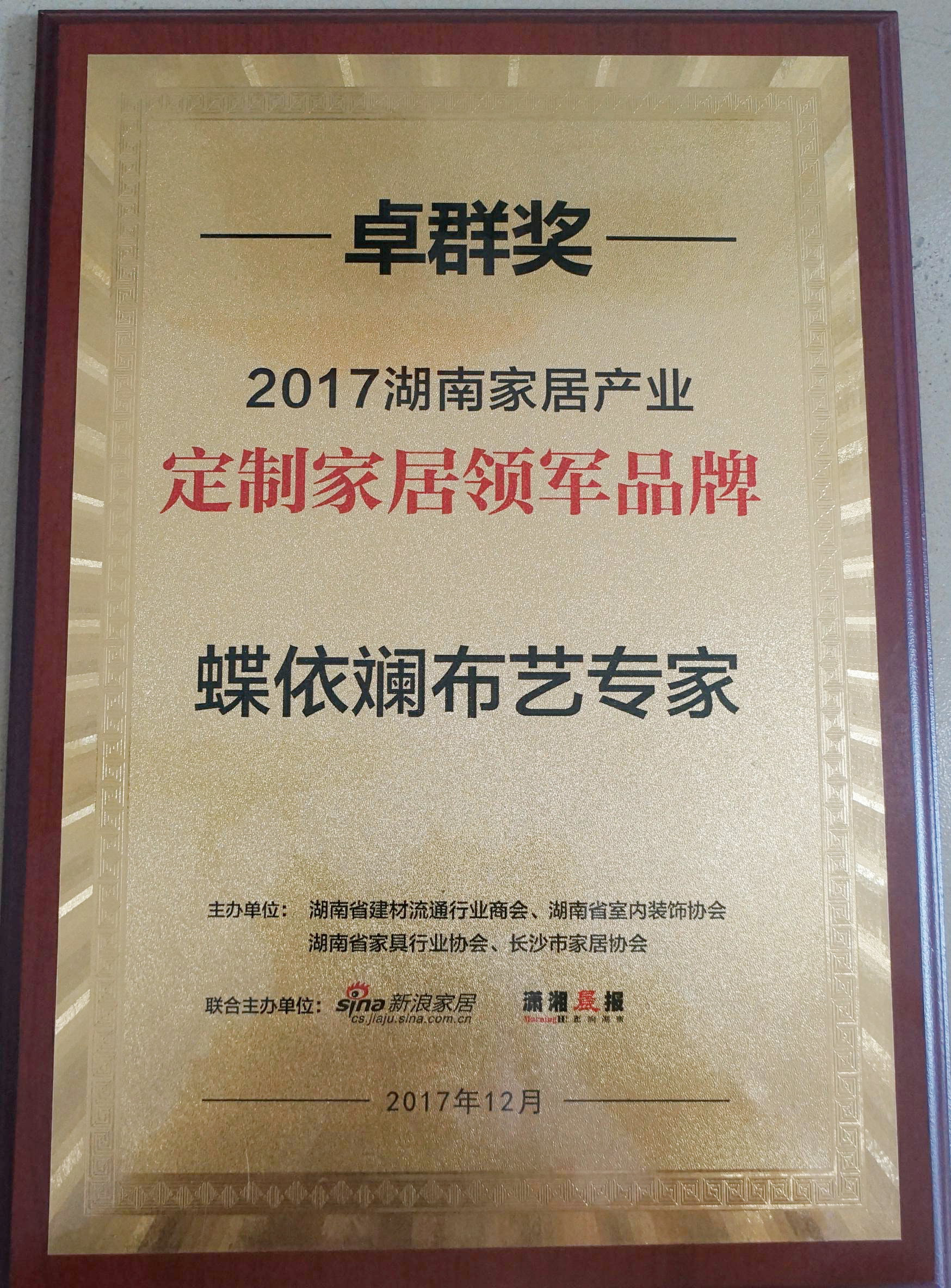 蝶依斓荣获“2017湖南家居产业定制家居领军品牌”