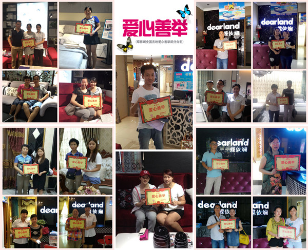 “一个企业,就像地球,不但要自转,而且要公转,就是企业在不断发展的同时,要时刻不忘企业的社会责任。”蝶依斓负责人如是说。自创立之日起,21年来,该品牌就坚持经济效益与社会责任齐头并进。慈善是蝶依斓幸福文化的重要组成部分。公司认真履行社会责任,曾连续十年参与“年货送低保”、“金秋助学”等一系列活动,在湖南工业大学设立“蝶依斓奖助学金”、爱心赞助“我的事业是父亲”大型公益演讲活动等等,受到了社会各界的好评。今年7月份,公司更是别出心裁,推出“爱尚床,送健康,引领客户做慈善”活动,累计以向株洲市天元区慈善分会捐款3万多元,爱心助力,正能量满满!